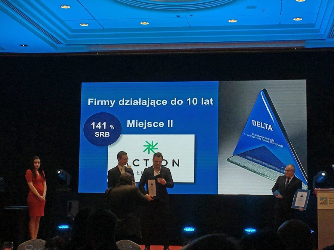 Podczas targów firma otrzymała po raz kolejny nagrodę DELTA 2018. Jest to nagroda Stowarzyszenia Polska Wentylacja wyróżniająca firmy o największej dynamice obrotów. W tym roku Action Energy otrzymało II miejsce w kategorii firm działających na rynku poniżej 10 lat.