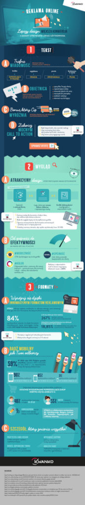 Grafika musi być przede wszystkim atrakcyjna. Aby to osiągnąć, zwróć uwagę na spójność przekazu reklamowego z szatą graficzną marki. Zdecyduj się na zastosowanie białego tła – jest bardziej naturalne oraz wygląda lepiej niż skomplikowana grafika. Reklamy z dobrze zaprojektowanym CTA, czyli widocznym, z odpowiednio dobranym kolorem oraz tekstem, mają klikalność lepszą nawet o 200 proc.