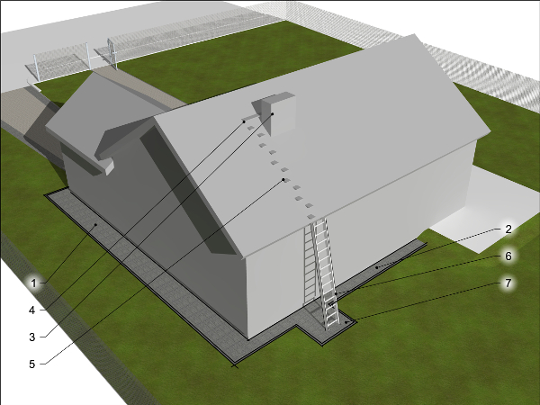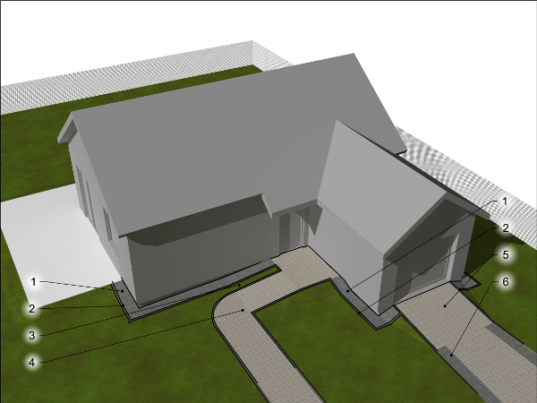 Opaska brukowa pełni równocześnie rolę ścieżki wokół domu