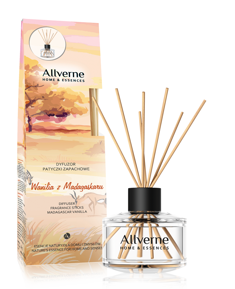 Każdy dyfuzor zapachowy Allverne zawiera flakon o pojemności 100ml esencji + patyczki rattanowe i wystarcza na 40 dni stosowania. Cena: ok. 22 zł/ szt.