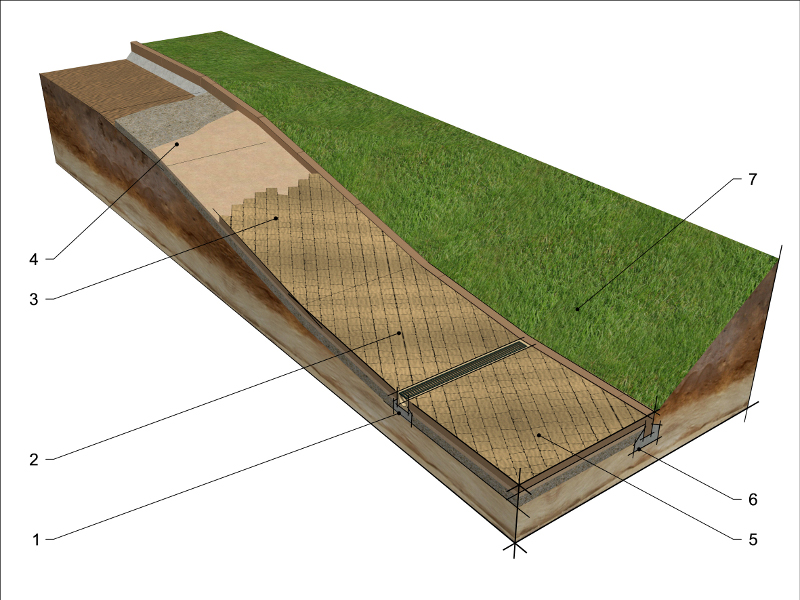 Zarówno ścieżkę jak i podjazd przeznaczony dla ruchu kołowego wykonuje się w zasadzie tak samo. Bardzo starannie należy wykonać podbudowę. Dla uniknięcia błędów przydaje się też projekt, który powinien zawierać szczegółowe parametry podjazdu – nachylenie, przełamania na początku i końcu (ich długość i nachylenie), długość wypłaszczenia i lokalizację odwodnienia.