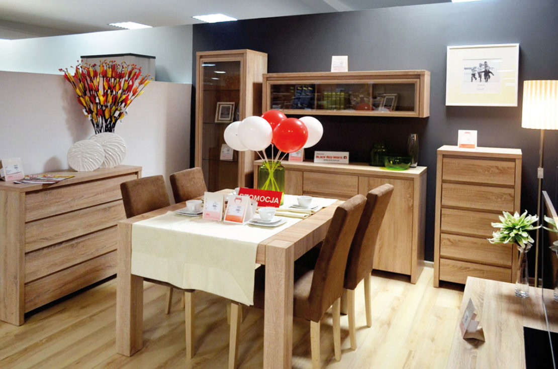 Dla wygody Klientów w olsztyńskim salonie powstał osobny dział poświęcony kuchniom, w którym wyeksponowano kolekcje modułowe Family Line, komplety Junona Line oraz zestawy Nika. Osoby poszukujące nowych elementów wyposażenia wnętrza w atrakcyjnych cenach powinny odwiedzić dział wyprzedaży w salonie w Ostrołęce, gdzie od ręki dostępnych jest wiele przecenionych mebli i dekoracji.