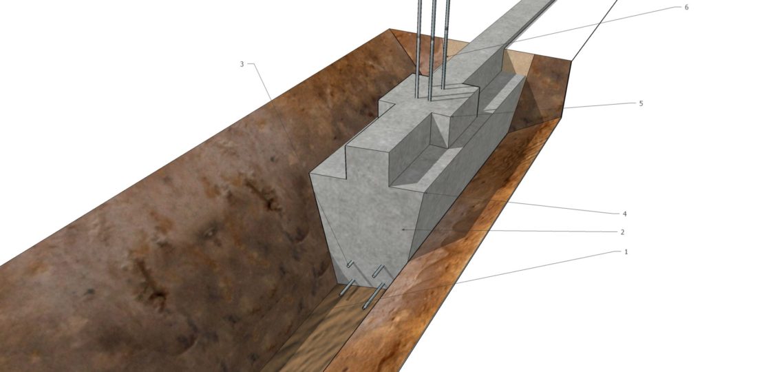 Jeśli zakończyliśmy z sukcesem działania projektowe, możemy rozpocząć budowanie. Etapem pierwszym (jak przy każdej konstrukcji murowej) są fundamenty. Ich zadaniem jest przeniesienie obciążeń z ogrodzenia na grunt. O ile nasz płot nie jest jednocześnie na przykład murem oporowym mającym utrzymać większe masy ziemi – nie są to z reguły obciążenia ogromne. Jeśli jednak ogrodzenie ma być stabilne i dobrze spełniać swoją funkcję – nie powinniśmy ich ignorować. Do ich wykonania używa się najczęściej betonu klasy B16/20. Ich rodzaj zależny jest od wielu czynników takich jak parametry techniczne gruntu, głębokość przemarzania czy też wysokość i masa samego płotu – dobrze jest więc, jeśli w ich projektowaniu bierze udział konstruktor. Fundament powinien być zbrojony podłużnie, powinien także mieć wypuszczone pręty do zbrojenia słupków. Najczęściej używa się do tego celu czterech prętów żebrowanych o średnicy 10mm, umieszczonych w narożach słupka. Kolejnym istotnym elementem technicznym fundamentu są dylatacje, czyli szczeliny pozwalające zneutralizować skutki rozszerzalności technicznej materiału oraz nierównomiernego osiadania gruntu. Powinny być one rozmieszczone co 8 – 10 metrów i zlokalizowane między podmurówką a słupkiem. Ze względu na przemarzanie gruntu fundament najczęściej wykonywany jest na głębokości około 80 – 90cm. Fragment ukryty pod ziemią wykonuje się zwykle ze względów technologicznych jako tzw. lany w wąskim wykopie. Ze względów estetycznych jednak górna partia której obrys będzie widoczny po wykonaniu ogrodzenia musi zostać precyzyjnie wyznaczona i zaszalowana.
