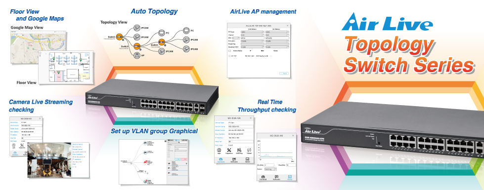 Marka AirLive, wspierana przez OvisLink Corp posiada 23-letnie doświadczenie w komunikacji sieciowej i nadzorze bezpieczeństwa. “Nowa generacja inteligentnych switchy Poe Topology” stanowi doskonałe wyposażenie sieciowe dla sprzedawców CCTV i nowoczesnego protokołu SMB do skutecznego zarządzania ich systemem.