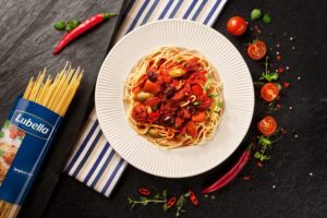 Spaghetti z chorizo w pomidorach