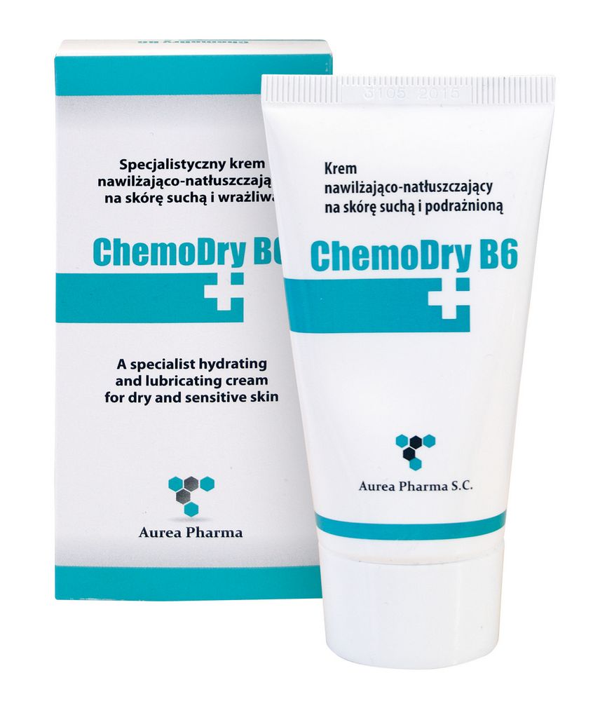Wszystkie powyższe składniki zawiera specjalistyczny preparat nawilżająco-natłuszczający ChemoDry B6, który opracowany został przez polskiego farmaceutę, we współpracy z lekarzami, a jego skuteczność potwierdzono klinicznie. Przeznaczony jest do twarzy i ciała, a szczególnie skóry suchej i wrażliwej, dłoni i stóp. Zalecany jest także dla Pacjentów, którzy leczą się za pomocą chemioterapii.