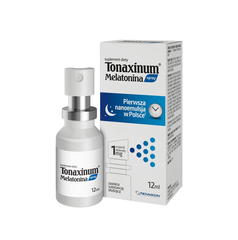 Producent Tonaxinum Melatonina Spray wykorzystał technologię nanoemulsji, dzięki czemu powstał suplement diety w spray’u, który zwiększa biodostępność melatoniny w organizmie. Jest to pierwsze takie rozwiązanie w Polsce. Krótko przed snem, kierujemy rozpylacz w kierunku otwartych ust i naciskamy pompkę tak, by rozpylić preparat na błony śluzowe w jamie ustnej lub pod język. Pomoże nam to skrócić czas potrzebny na zaśnięcie.